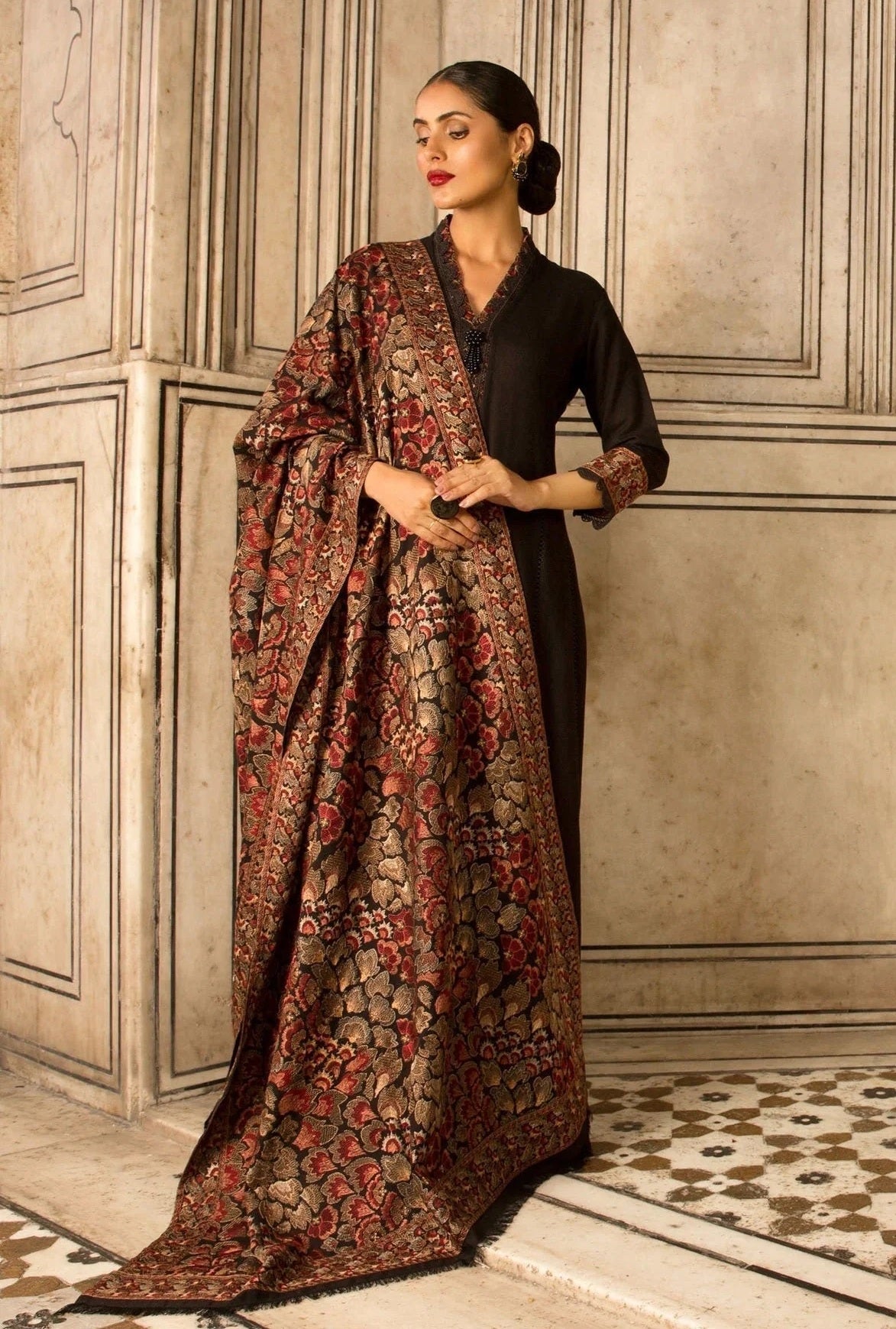 Bareeze Rose Petal Karandi Embroidered Shawl Fully Embroidered AD-431