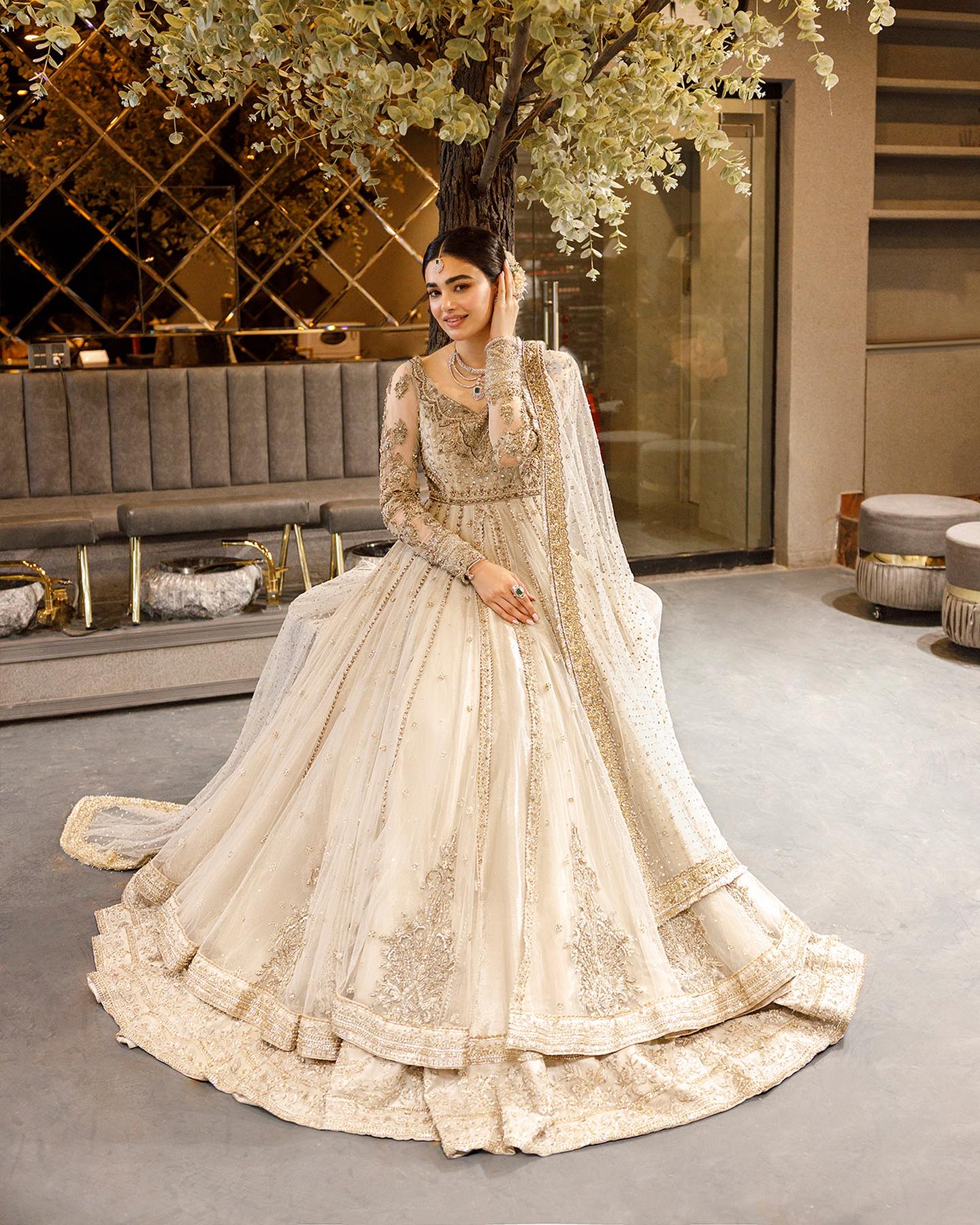 Faiza Saqlain Golden White Organza Bridal Wedding Edition Unstitched ANAMTA