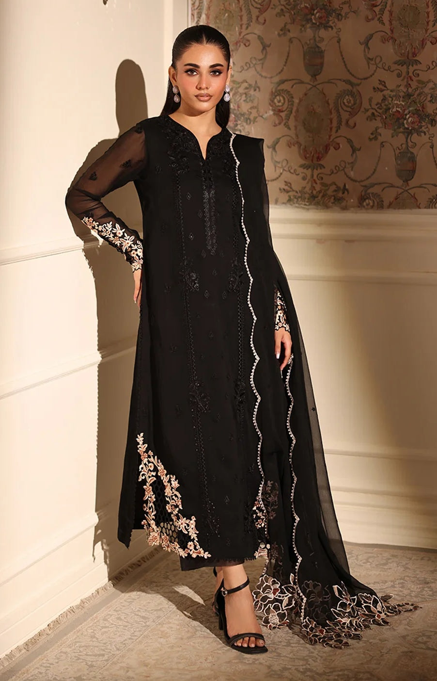 Introducing Azure - Dusken Lace, an exquisite three-piece unstitched ensemble crafted from premium chiffon. This luxury collection features intricate lace embroidery that showcases masterful craftsmanship and refined elegance. The lightweight, breathable chiffon fabric drapes beautifully, making it ideal for creating sophisticated formal wear or everyday pieces with a touch of opulence. The unstitched format allows complete customization to your preferred silhouette and fit. Perfect for those who appreciate fine textiles and bespoke tailoring, this collection combines traditional artistry with contemporary design sensibilities.