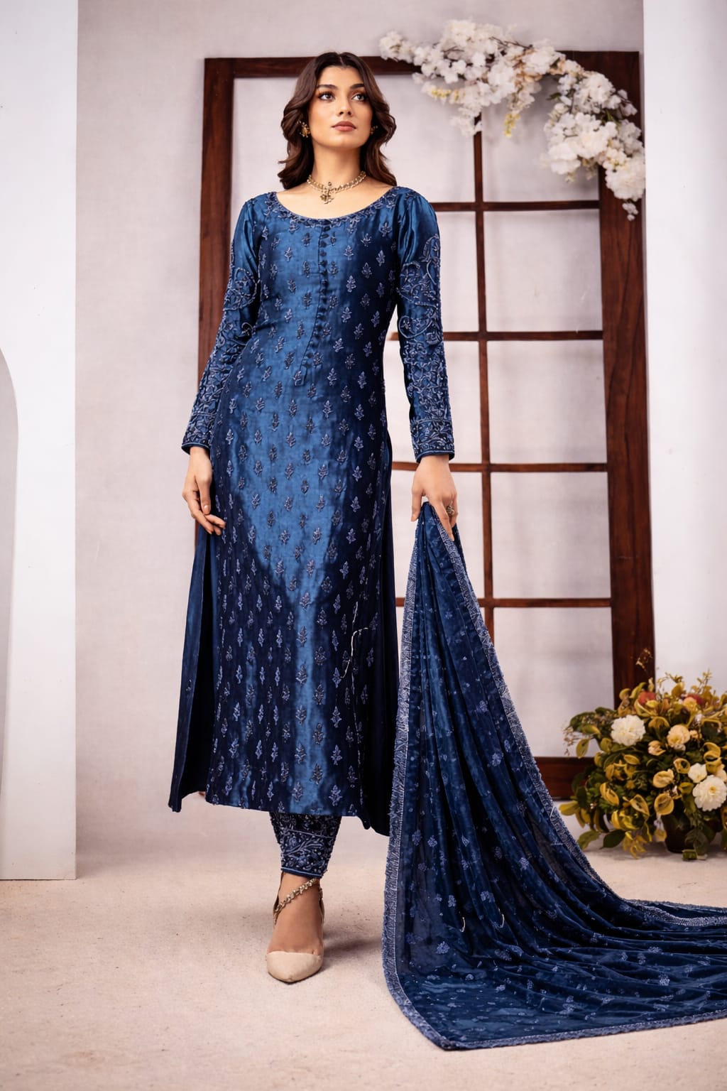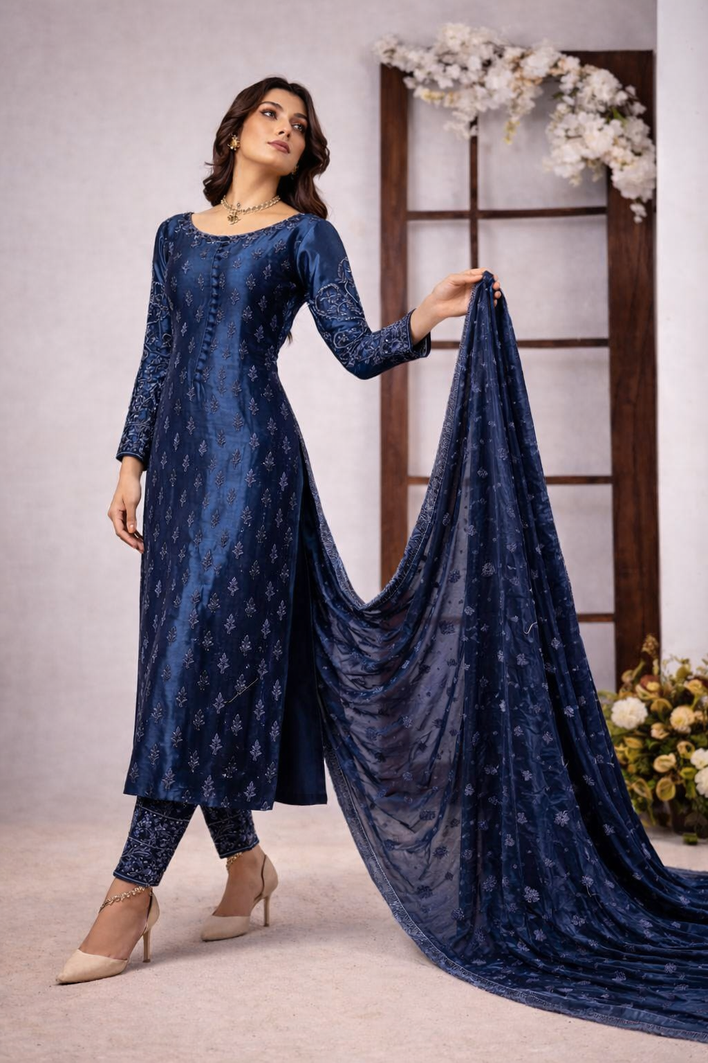 Experience timeless elegance with this Ahmed Sultan luxury collection piece. Crafted from pure raw silk, this unstitched 3-piece ensemble features a stunning tangerine and teal blue color palette that brings sophistication to any wardrobe. Raw silk's natural texture and subtle sheen create an authentic, premium look perfect for formal occasions, celebrations, or everyday refined wear. The unstitched format allows complete customization—tailor it to your exact measurements and personal style preferences. This versatile set includes three coordinated pieces, offering endless styling possibilities. Ideal for those who appreciate quality fabrics and timeless design, this collection piece is a worthy investment in your ethnic wear collection.