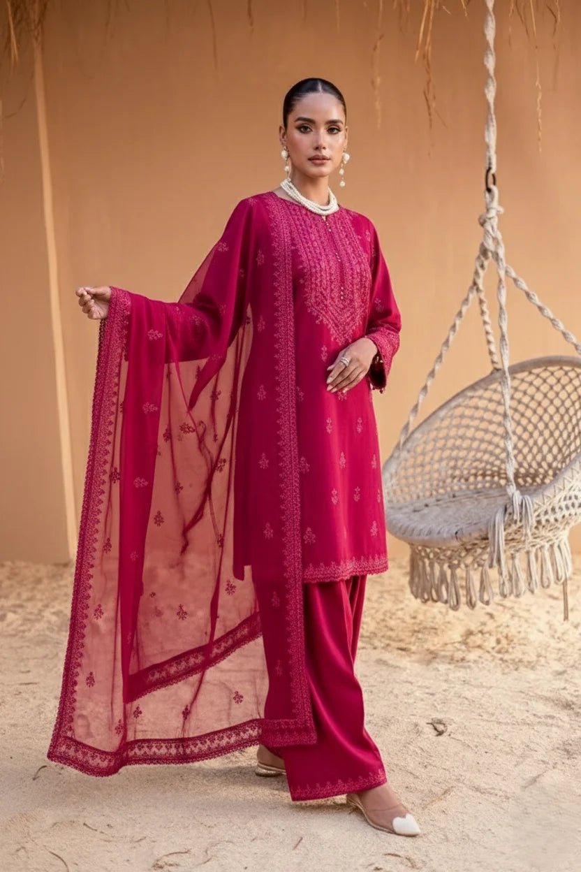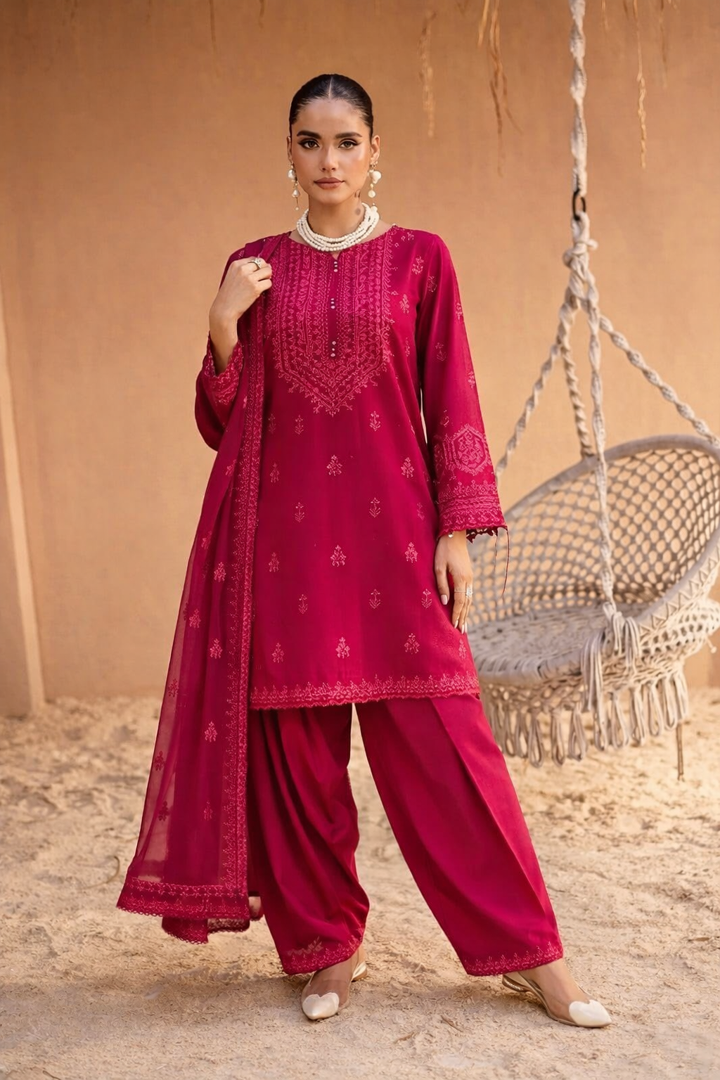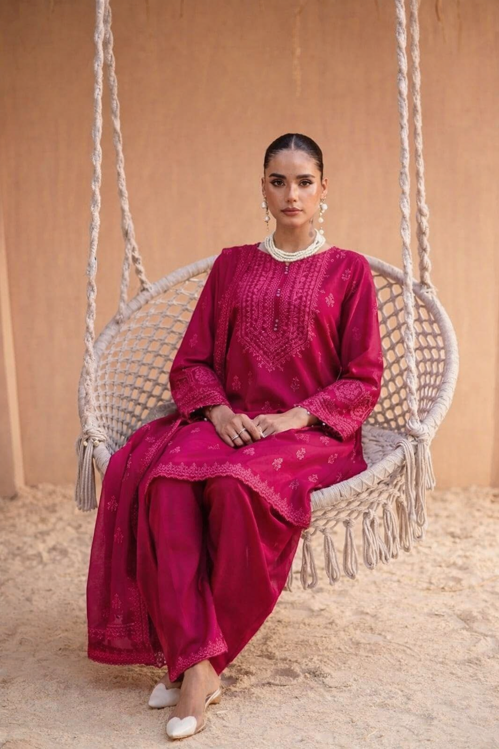 Elevate your wardrobe with this exquisite Batik Luxury Lawn ensemble, featuring intricate embroidery in a stunning pink henna palette. This three-piece unstitched suit offers the freedom to customize your fit and silhouette according to your preferences. Crafted from premium lawn fabric, it delivers breathability and comfort ideal for warm weather wear. The detailed embroidery work showcases traditional artistry, making it perfect for festive occasions, celebrations, or elevated everyday styling. Unstitched format allows you to work with your preferred tailor for a truly personalized garment that reflects your individual aesthetic.