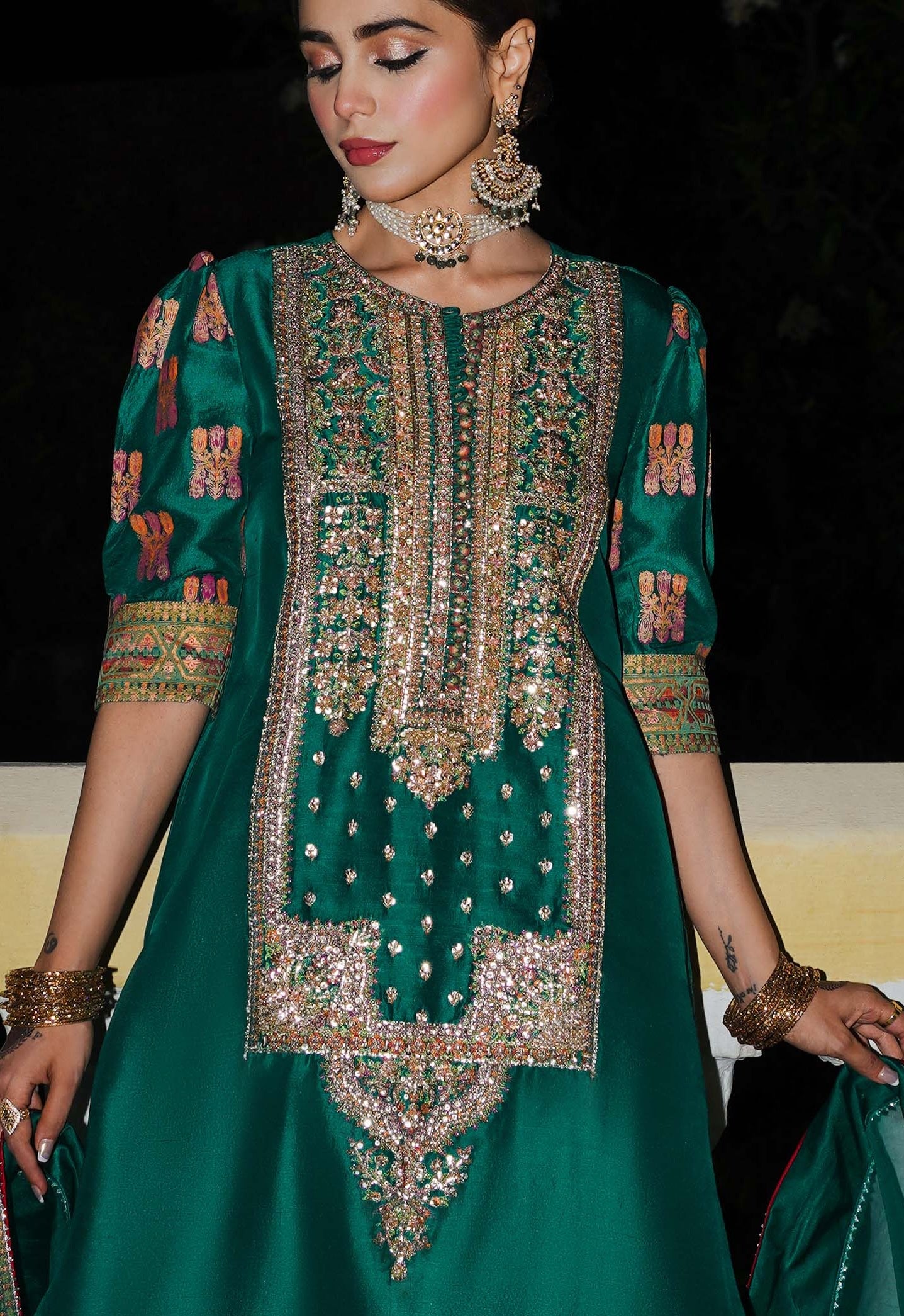 Elevate your wardrobe with this exquisite Hussain Rehar collection piece, crafted from premium raw silk in a sophisticated beryl shade. This unstitched three-piece ensemble features intricate embroidery work that showcases traditional artisanal craftsmanship. The luxurious fabric drapes beautifully, offering both comfort and elegance for formal occasions and celebrations. Perfect for those who appreciate fine textiles and bespoke tailoring, this set allows you to customize the fit to your exact specifications. An investment in timeless style and quality.