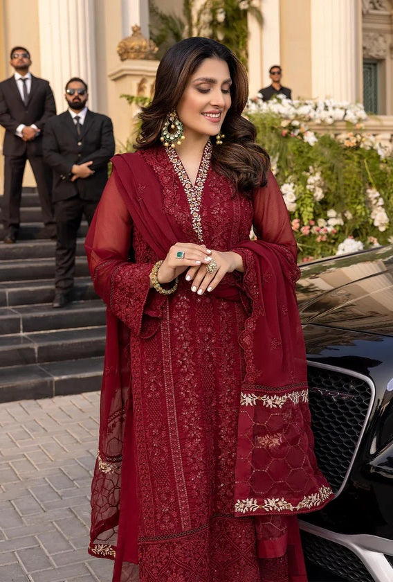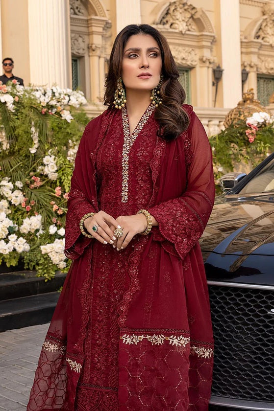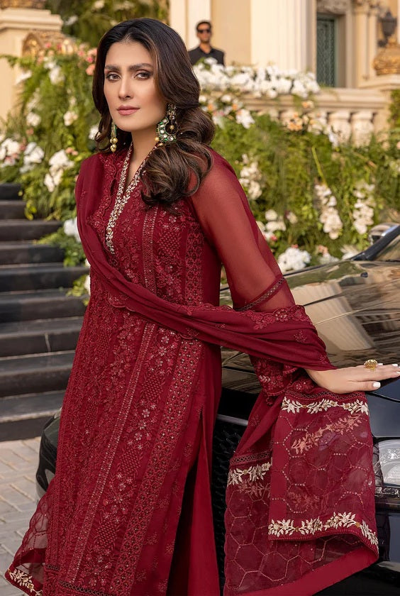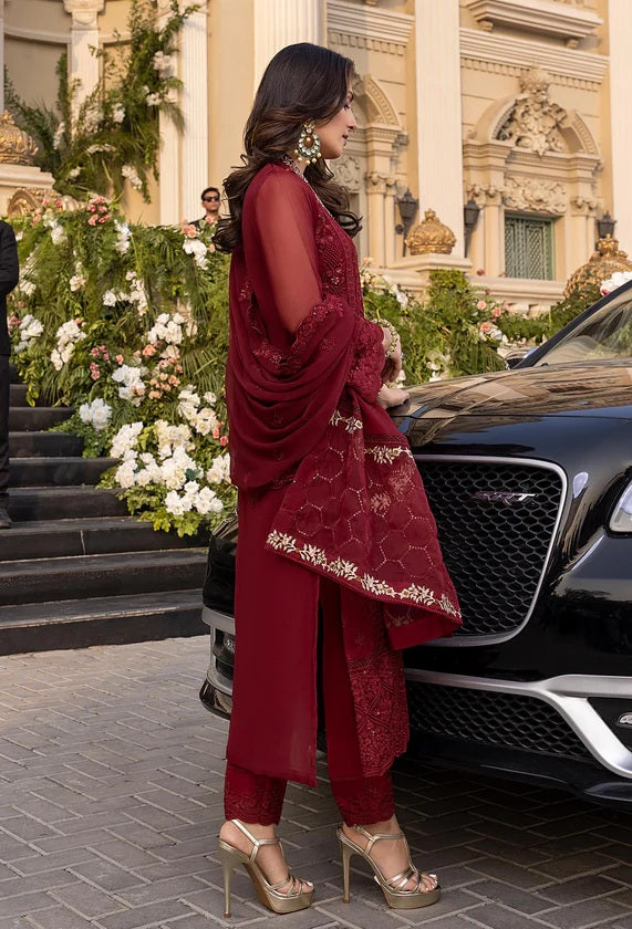 Azure Vibrant Ruby - Luxury Chiffon Embroidered 3 Piece Unstitched