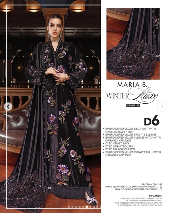 Maria.B Winter Luxe Embroidered Velvet Unstitched 3Pc Suit D-06 With Palaichi Shawl