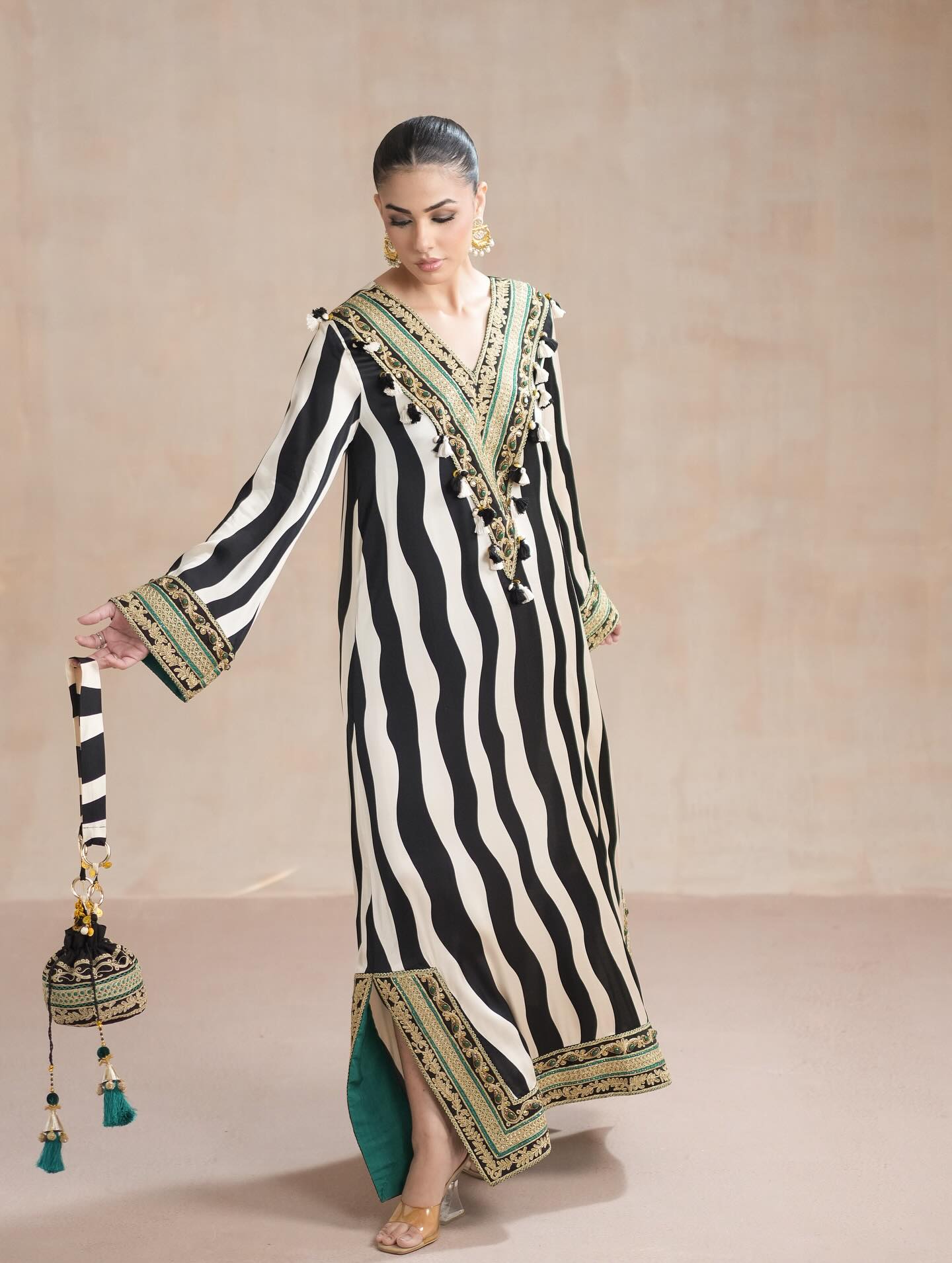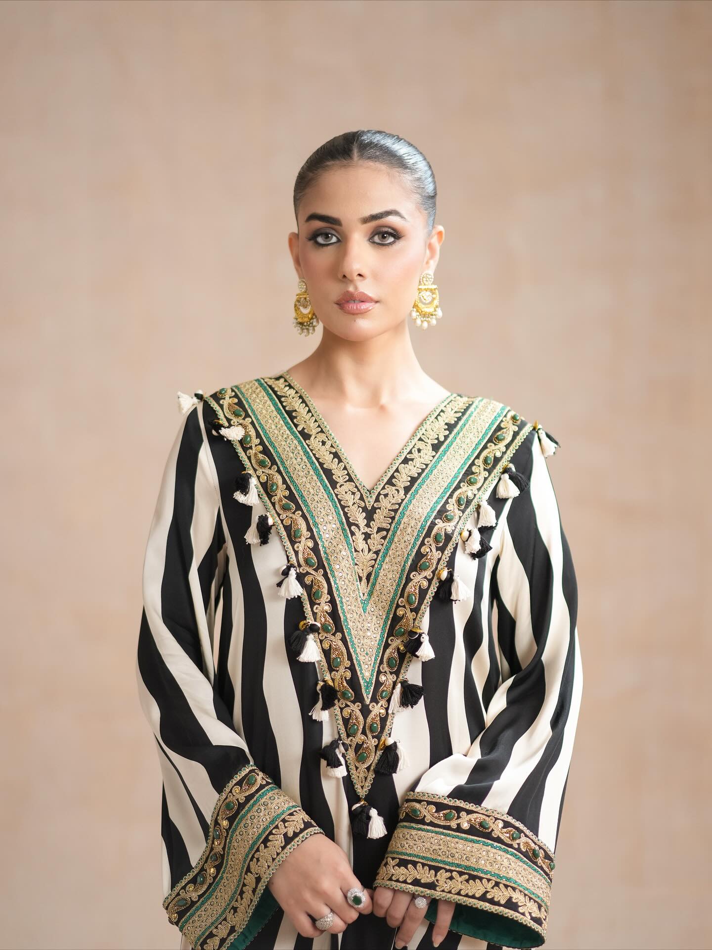 Amara & Sara Luxury Silk Embroidered Collection Bohemian Stripes