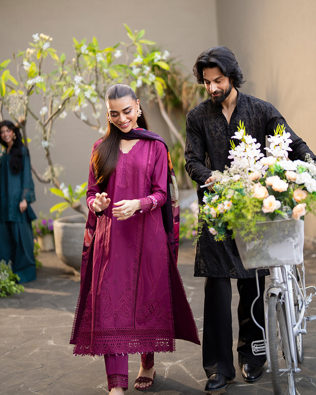 Azure Luxury Embroidered Lawn 3 Piece Unstitched Suit WINE MIRAGE