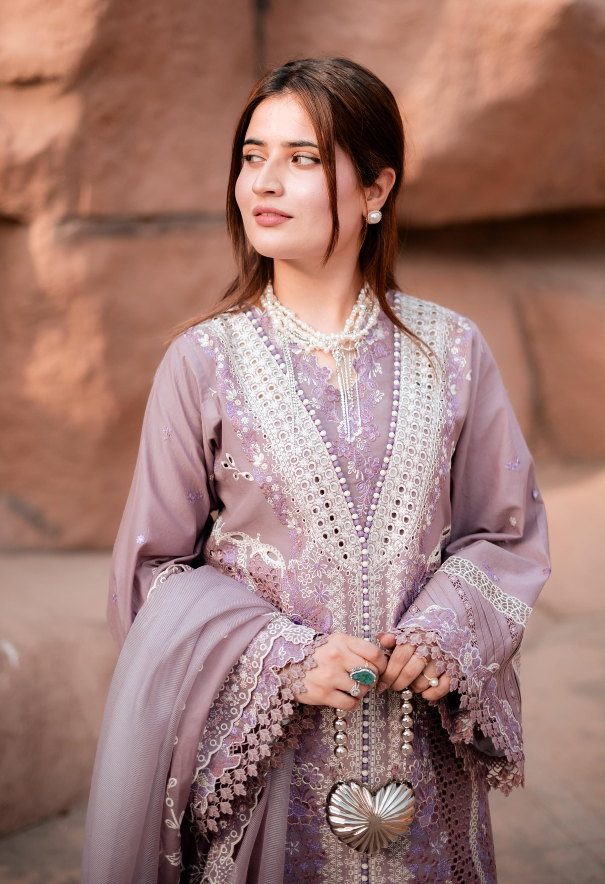 Bin Ilyas Luxury Lawn Chikankari Luxury Embroidered 3 Piece Suit - J1547