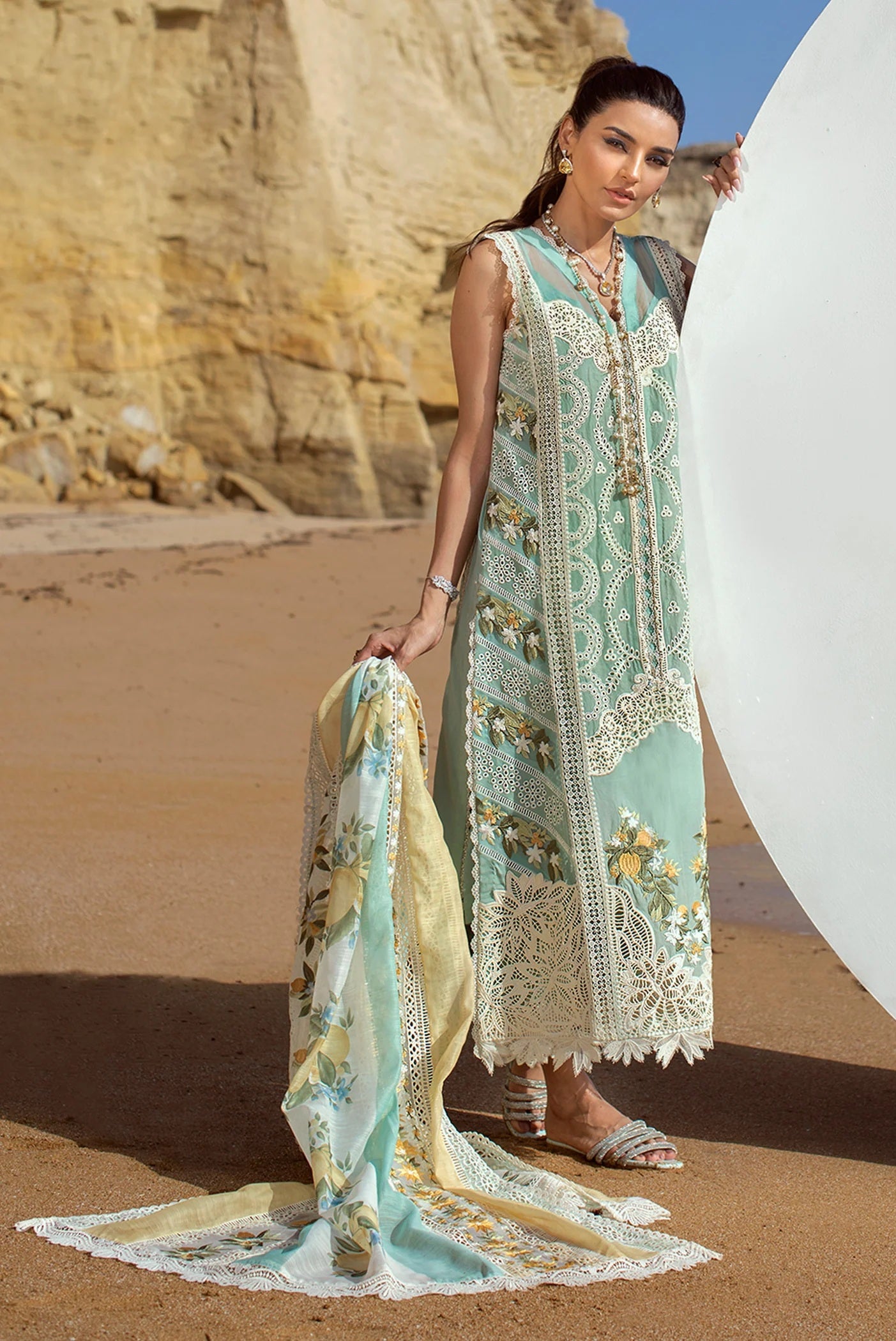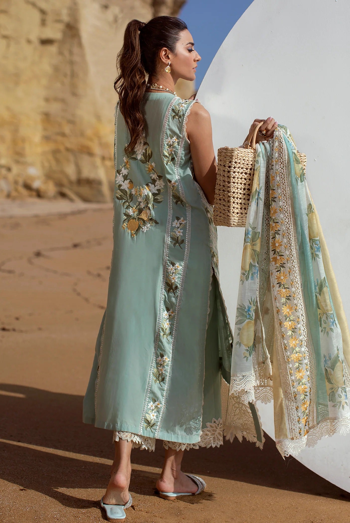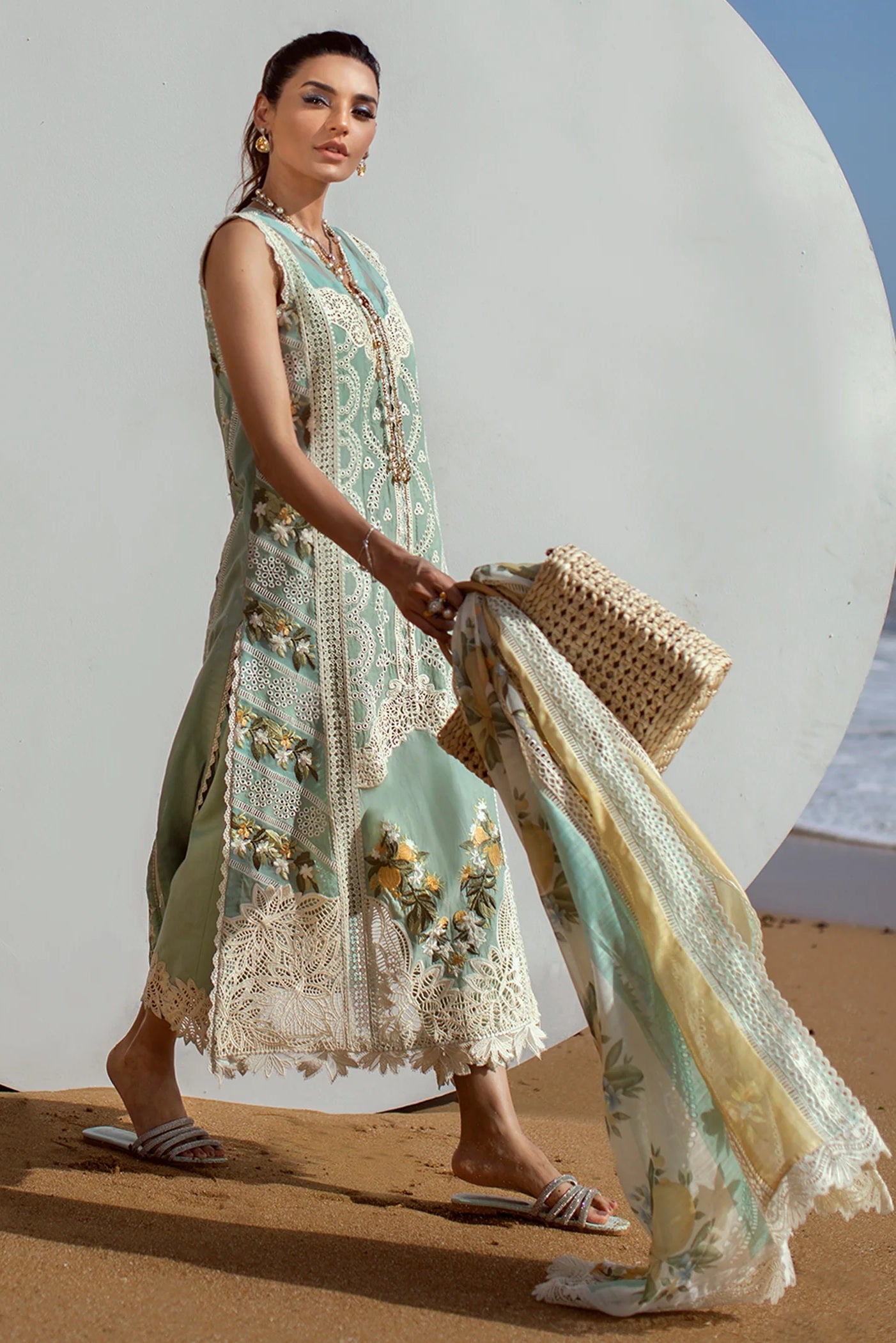 Crimson - Lawn Embroidered 3 Piece Unstitched - Sicilian Summer - 2A - Aqua