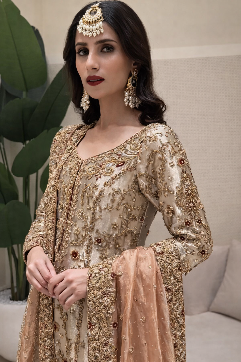 Introducing the Haris Shakeel Mesuri Hand Embellished & Embroidered Suit DILRUBA—a masterpiece of traditional craftsmanship and contemporary elegance. Each piece features meticulous hand embroidery and embellishments, showcasing the artistry of skilled artisans. The DILRUBA collection exemplifies refined tailoring with intricate detailing that elevates any occasion. Crafted with premium fabrics and attention to detail, this suit combines timeless sophistication with modern sensibility. Perfect for those who appreciate authentic craftsmanship and distinctive style, this ensemble makes a compelling statement at weddings, formal events, and celebrations.
