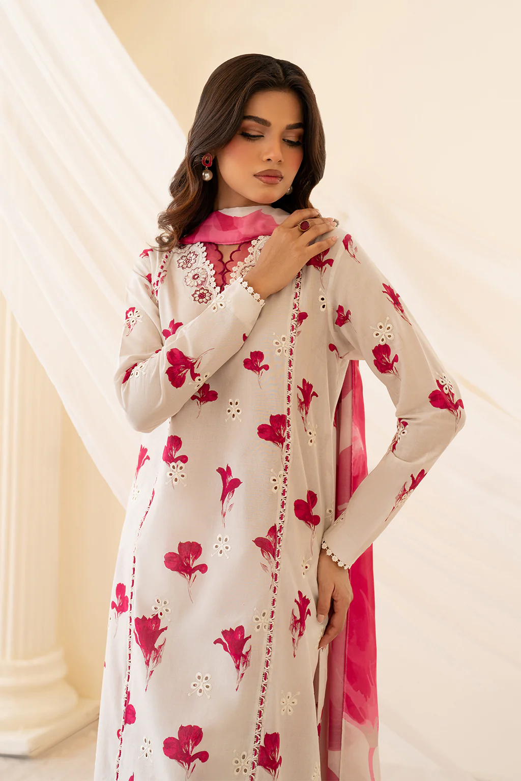 Iznik Premium Lawn Embroidered Collection presents the Floral Affair UE-443, an unstitched ensemble crafted from premium lawn fabric. This sophisticated design features intricate embroidery work that showcases traditional floral motifs with contemporary aesthetics. The unstitched format allows for personalized tailoring to your exact measurements and style preferences. Perfect for creating elegant formal wear or casual occasions, this collection piece combines quality craftsmanship with versatile design. Ideal for those who appreciate fine embroidered textiles and seek customization in their wardrobe selections.