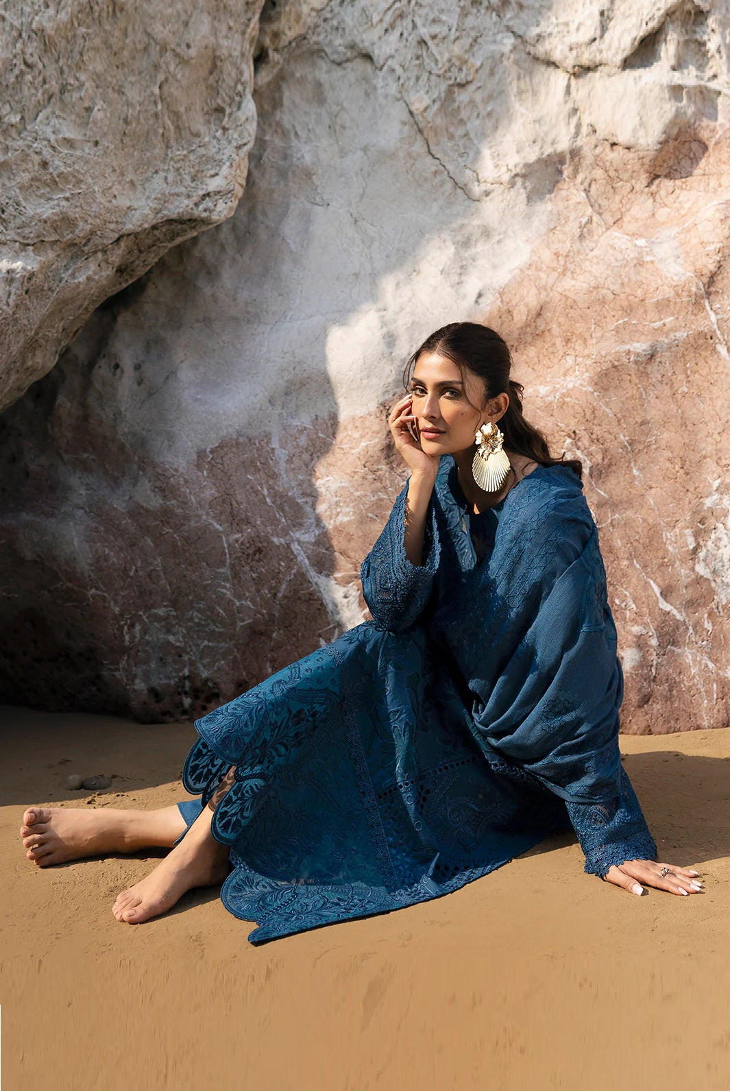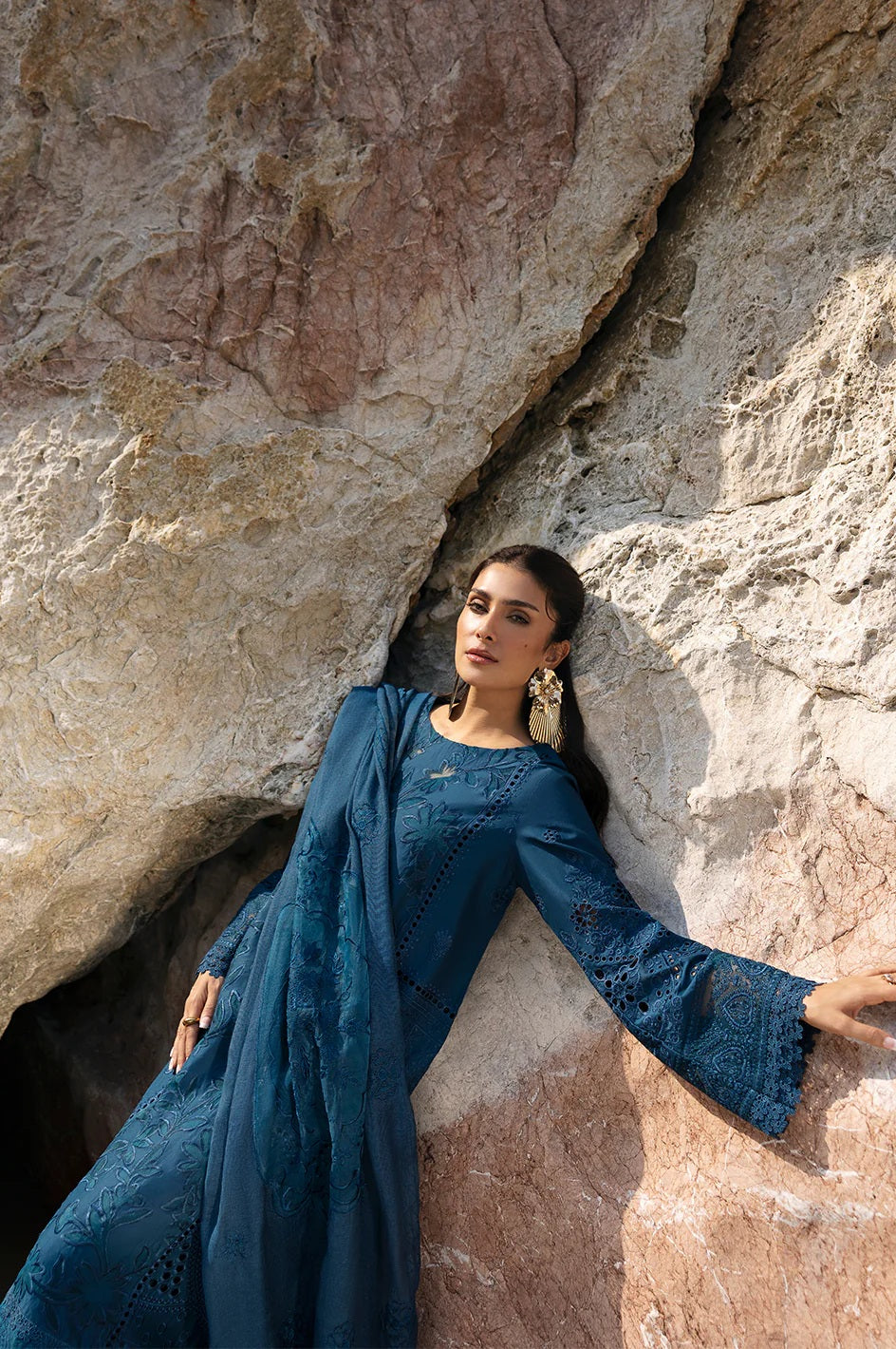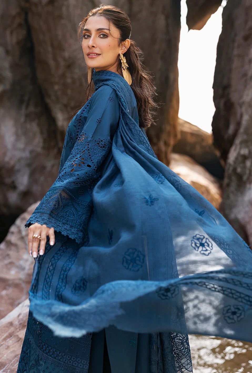 Mahnur presents an exquisite luxury lawn collection featuring intricate embroidery work in a sophisticated iris palette. This three-piece unstitched ensemble offers discerning customers the freedom to customize their garment construction while enjoying premium fabric quality and refined craftsmanship. The delicate embroidered detailing showcases traditional artistry combined with contemporary design sensibilities, making it an ideal choice for those seeking elegance and individuality. Perfect for special occasions or elevated everyday wear, this collection delivers timeless sophistication with the versatility of unstitched fabric.