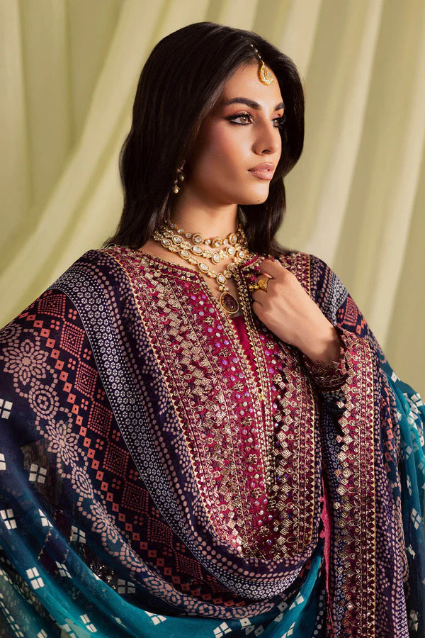 Nureh Lawn Embroidered 3 Pc Unstitched Collection JUGNI features premium quality lawn fabric with intricate embroidery work, perfect for creating elegant traditional wear. This unstitched collection includes three coordinated pieces—shirt, dupatta, and trouser—allowing you to customize the fit and style to your preferences. The JUGNI design showcases detailed embellishments that reflect contemporary craftsmanship while maintaining classic appeal. Ideal for special occasions, casual gatherings, or everyday sophistication, this collection offers versatility and comfort. Transform these pieces into your signature look with a tailor of your choice.