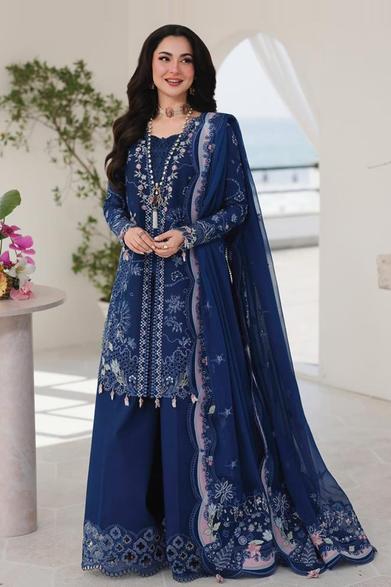 Qalamkar's SA-16 ESMA collection showcases premium lawn fabric with intricate embroidery work, perfect for creating sophisticated three-piece ensembles. This unstitched set features carefully curated designs that blend traditional craftsmanship with contemporary aesthetics. The fine lawn material offers breathability and comfort, ideal for warm weather wear. Each piece is meticulously embroidered, allowing you to customize the fit while maintaining the luxury appeal of Qalamkar's signature style. Ideal for those seeking quality fabrics with refined embellishment details.