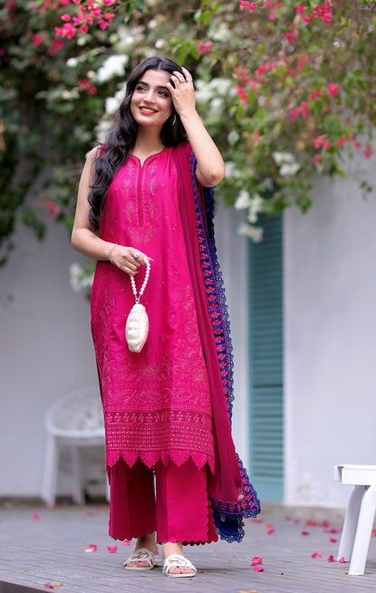 Republic Womenswear Luxury Lawn Embroidered 3 Pc Unstitched Suit Shocking Pink