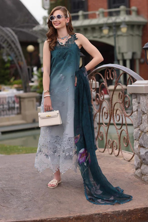 Saadia asad - Lawn Embroidered 3 Piece Unstitched - D10- Teal Ombre