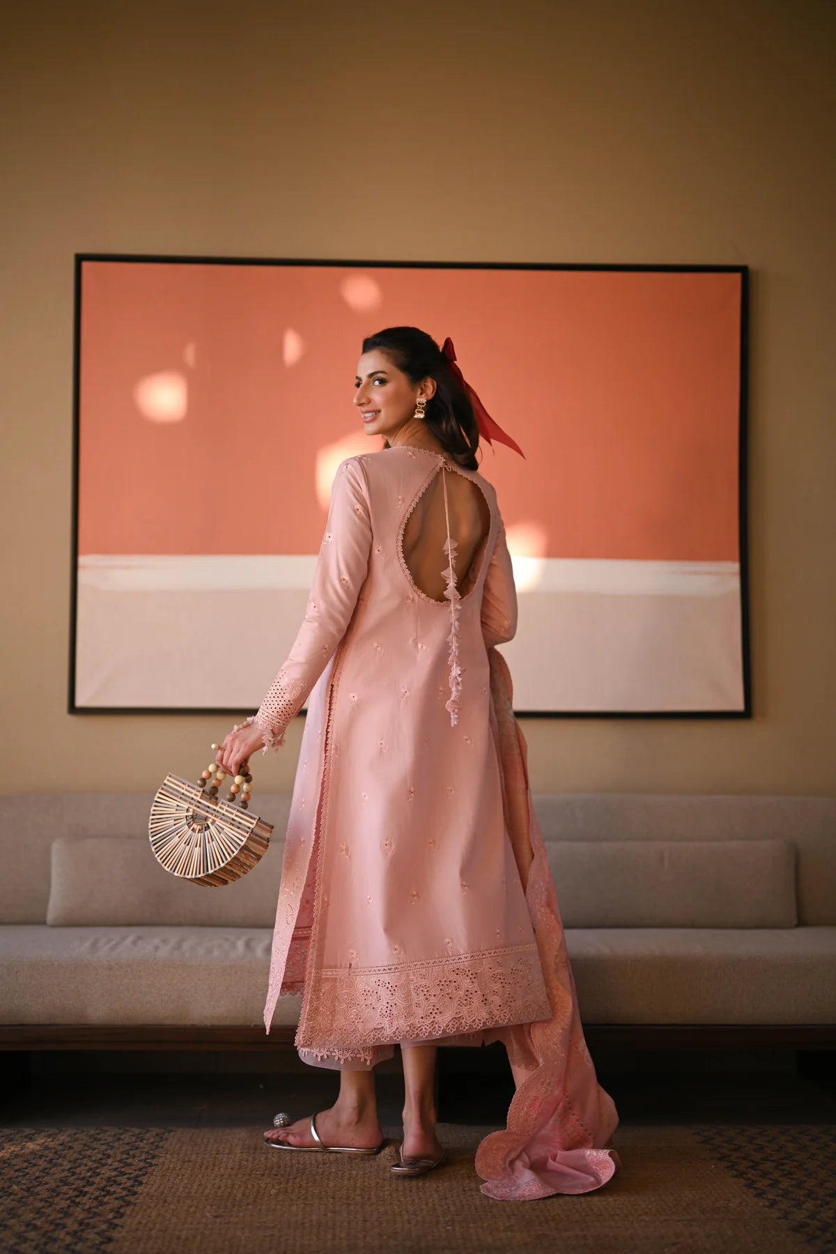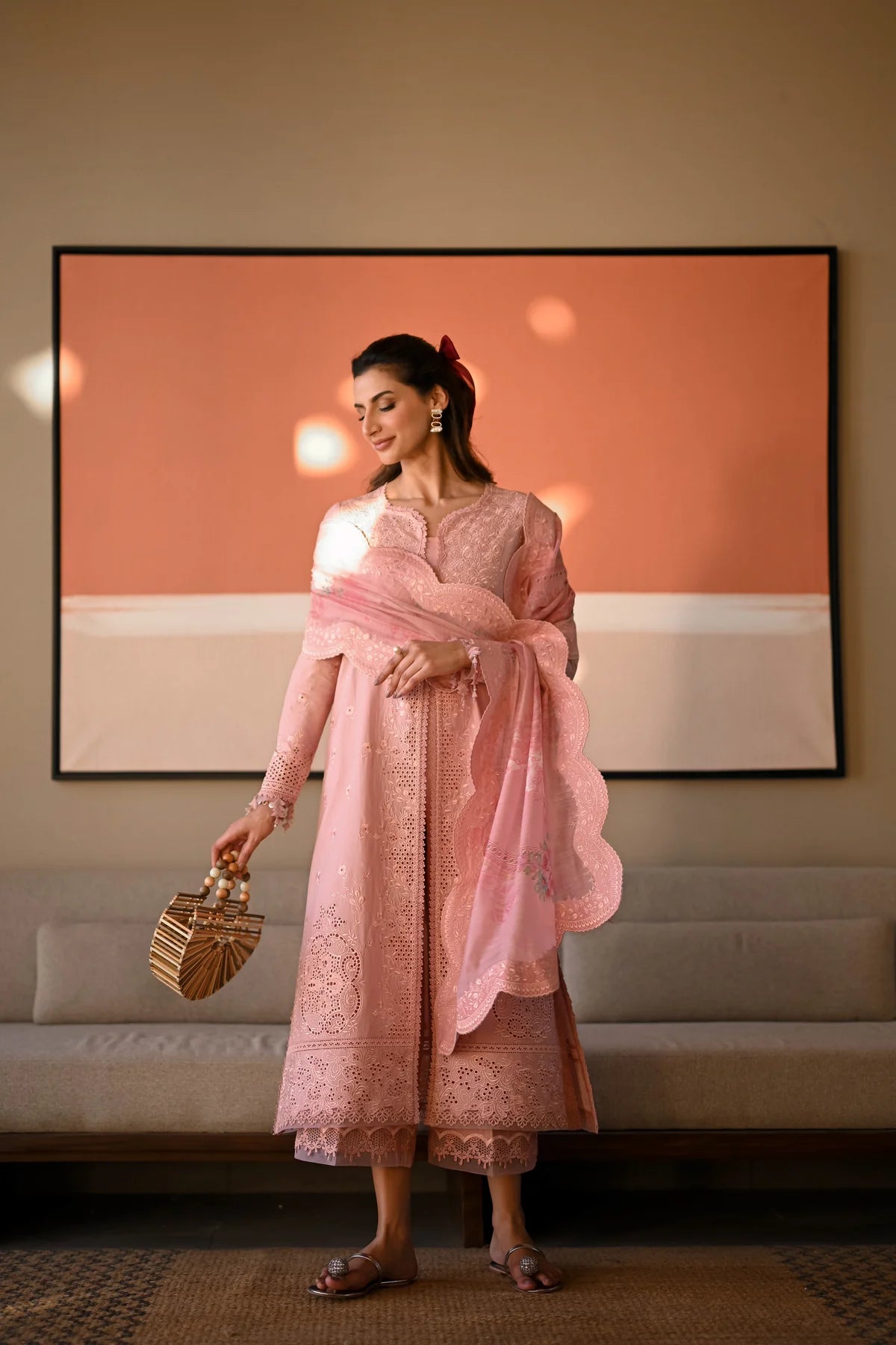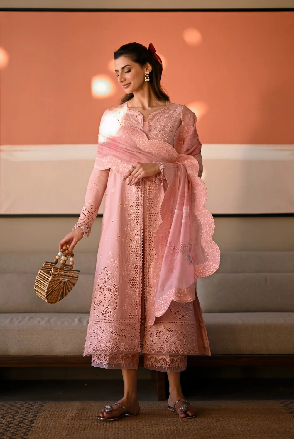 Zahra By ZAIB Pastel Pink Luxury Embroidered Unstitched Suit ZAHRA